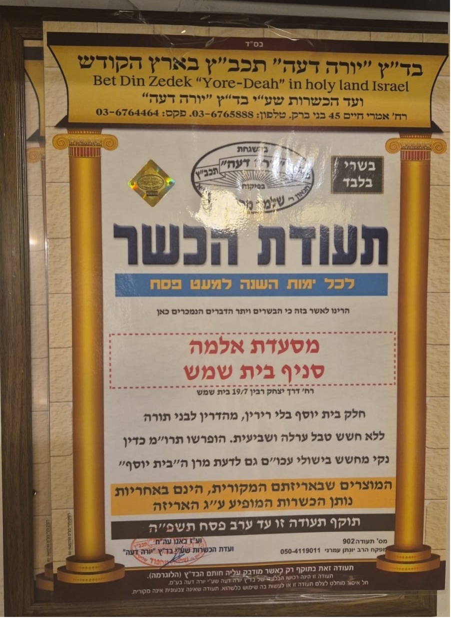 בנוסף החליפו שם לכשרות מצויינת של הרב מחפוד.